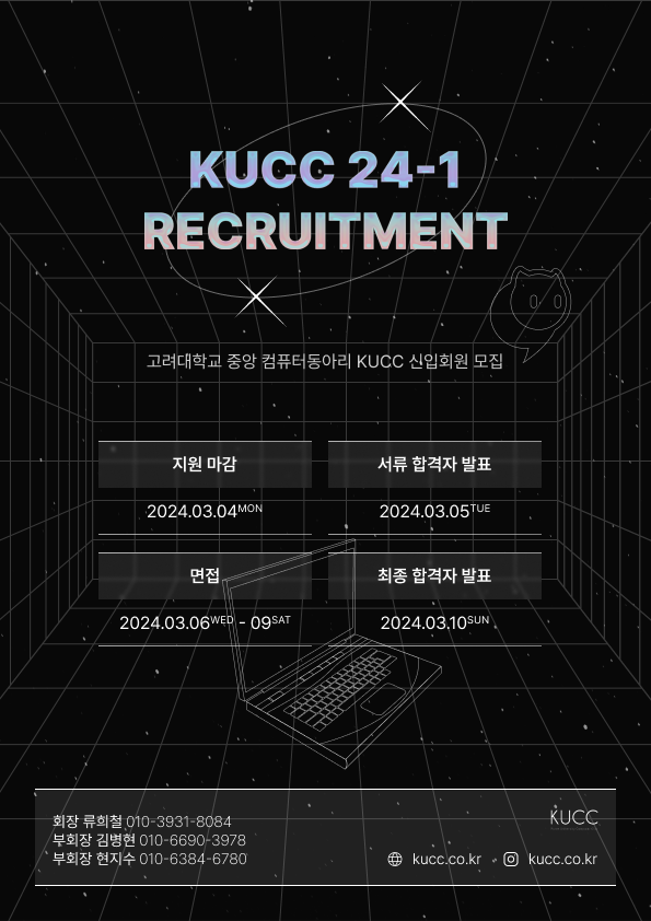 | [포스터] KUCC 20-2 리크루팅 (0) | 2020.09.05 |