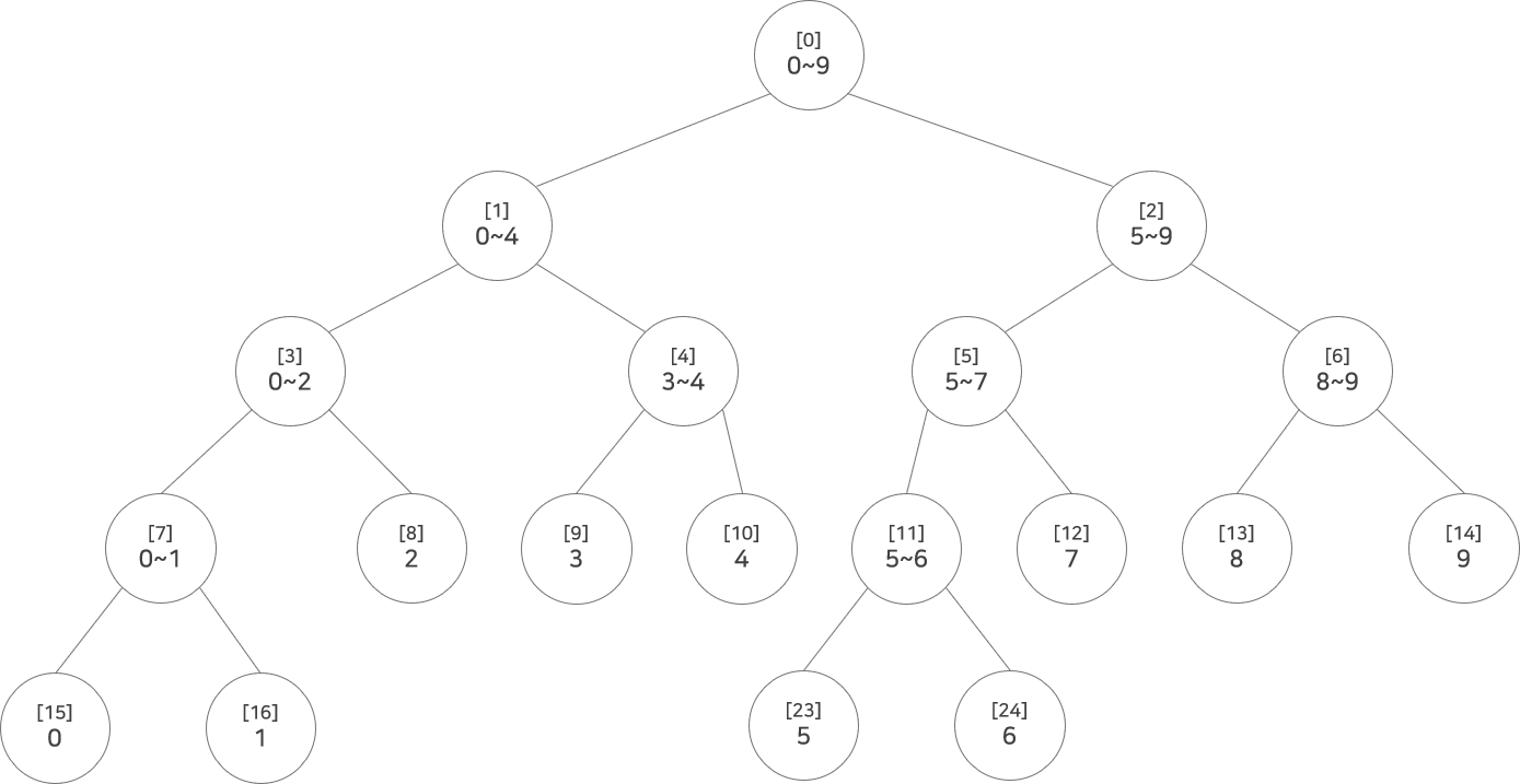 일반적으로는 8, 9, 10, 23, 24, 12번 노드에 접근해서 위 부모 노드들까지 값을 업데이트시켜줄 것이다. 이런 식으로 하면 만약 업데이트되는 구간이 더 길어질 경우 시간복잡도가 최대 O(NlogN)까지 늘어날 것이다.
