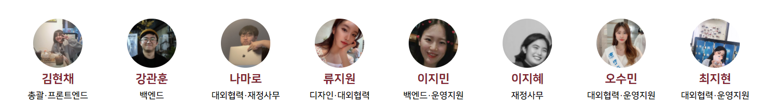 특히 홈페이지 개발팀(프론트엔드 본인, 백엔드 관훈오빠, 지민언니, 디자인 지원언니)이 가장 열심히 애썼던 부분이다. 지원언니의 디자인 시안이 너무 예쁘게 나와서 프론트엔드에 힘을 많이 덜 수 있었다.