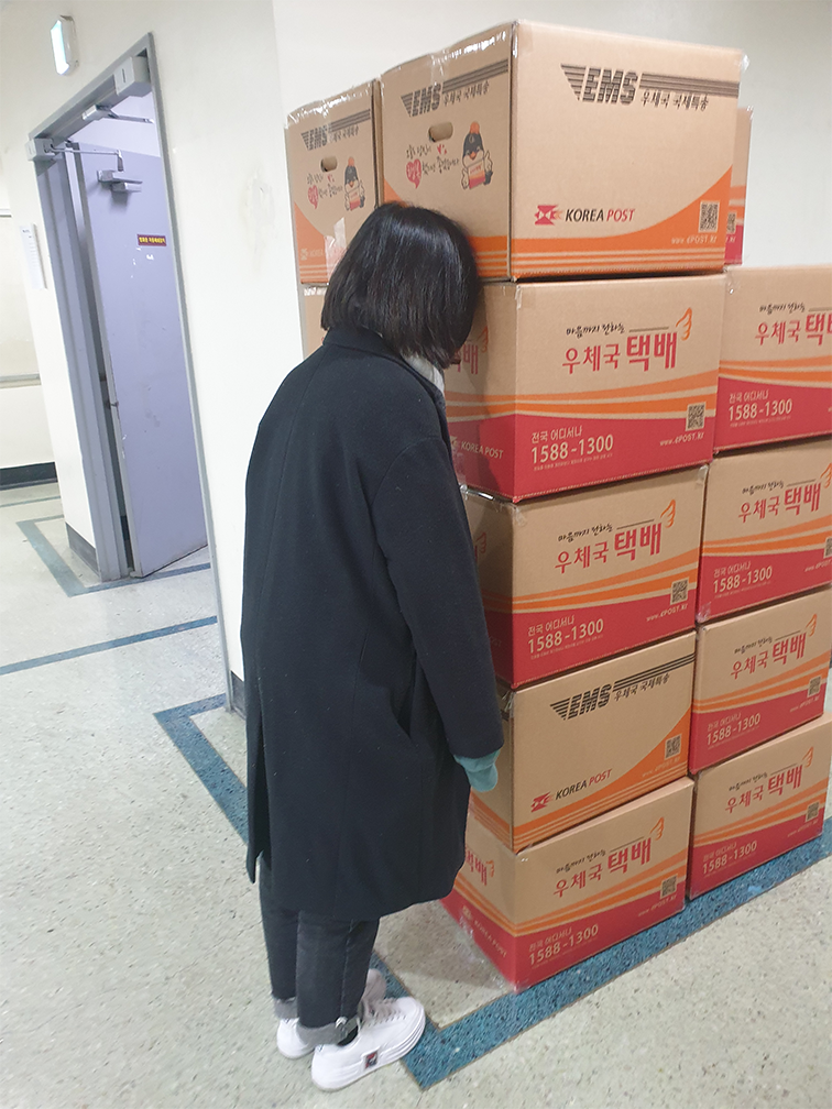 원래는 이걸 하나씩 들거나 수레를 가져와서 국제관 우체국까지 옮기려고 했는데 책 무게가 생각보다 상당했다. 도저히 직접 옮길 무게가 아니어서 결국 다음 날 우체국에 방문수거를 신청했다. (다음 날도 학교에 와야 했다는 뜻이다.)