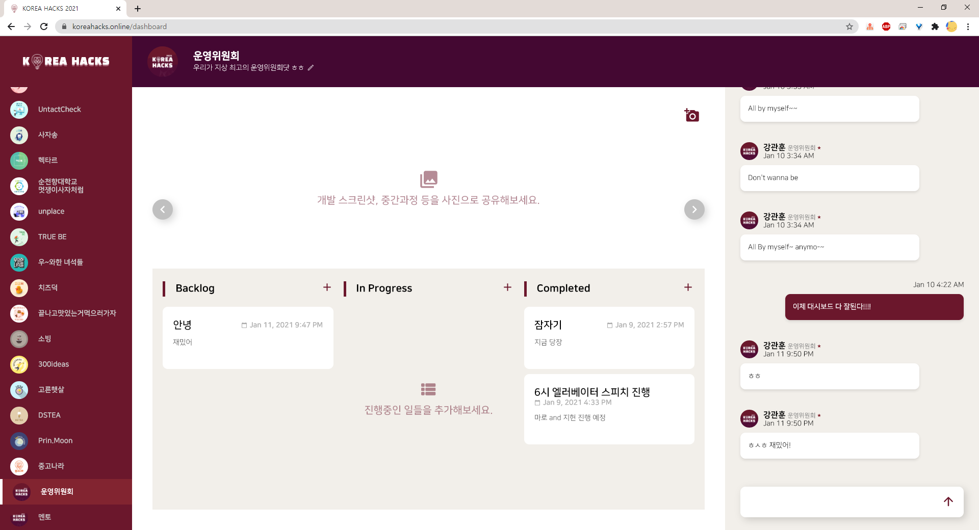 대시보드를 보며 각자 어떤 서비스를 만들고 있는지, 어떻게 개발을 하고 있는지에 대해 이야기했다.