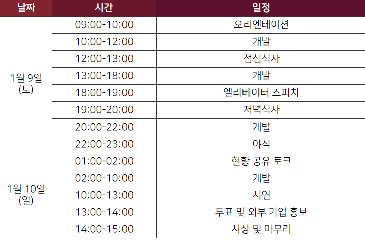 아침에는 기본적인 대회 소개부터 카카오워크 소개, 대시보드 사용법 등을 설명하는 오티를 진행하고, 식사 시간과 중간중간 참가자 간의 소통을 위한 엘리베이터 스피치와 작년엔 없었던 새벽 현황 공유 시간도 배정했다.