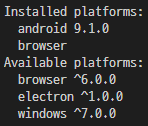 위 명령어를 치면 현재 설치된 플랫폼과 설치할 수 있는 플랫폼을 알려줍니다. 또, 프로젝트 내의 최상위 디렉토리의 platforms 폴더에서도 확인할 수 있습니다. (platforms 내의 파일들은 절대 수정하면 안됩니다.)