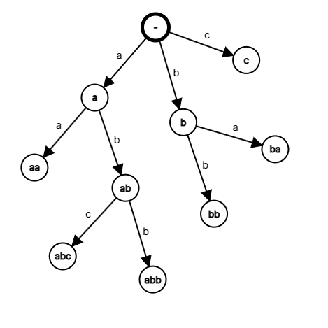 각 노드는 문자를 나타내며, 문자열의 접두사를 공통으로 가지는 경로를 형성합니다.